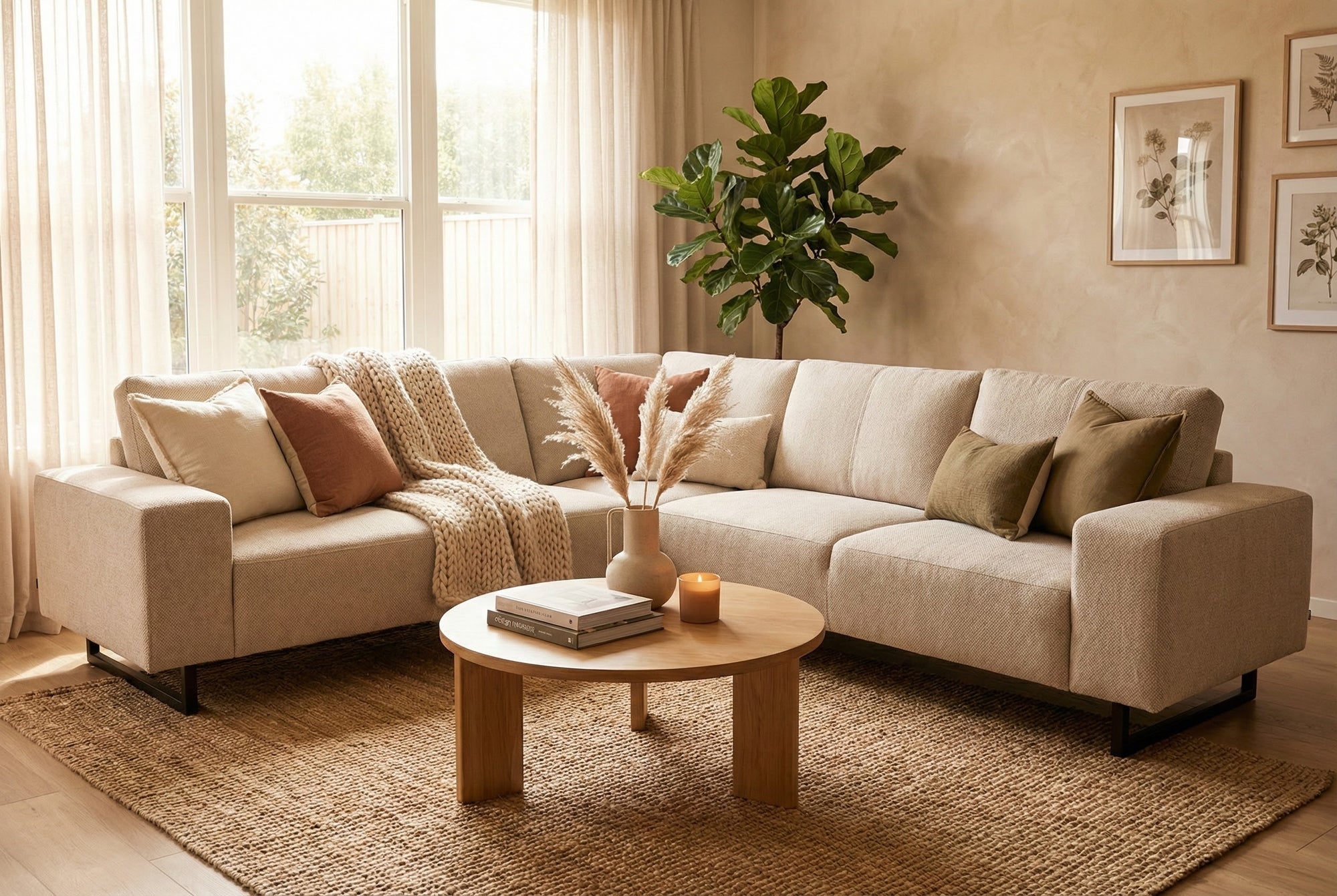 "Découvrez notre salon d'angle compact polyvalent, conçu pour les espaces de vie modernes. Cette solution astucieuse offre non seulement un confor...