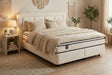 Apportez de la douceur à votre intérieur avec le Boxspring Mabel. Habillé d'un tissu ultra-tendance, ce lit invite à la détente immédiate. Sa tête de lit aux lignes verticales et aux bords arrondis offre un style moderne et épuré (Japandi). Le choix idéal pour ceux qui cherchent une chambre à la fois chic, lumineuse et chaleureuse.