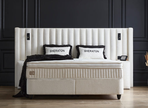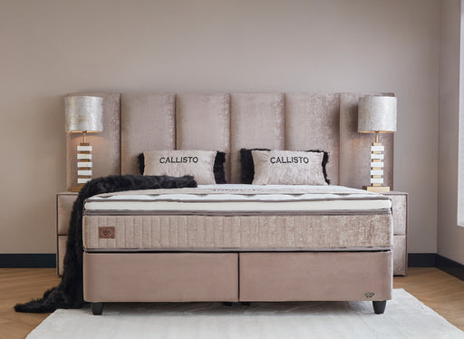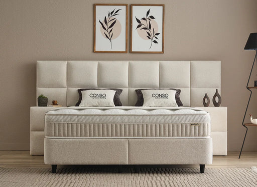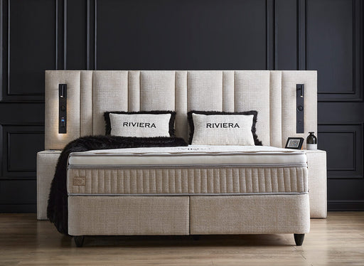 Transformez votre chambre en une véritable suite 5 étoiles avec le Boxspring XXL Olivia. Sa tête de lit panoramique extra-large habille tout le mu...