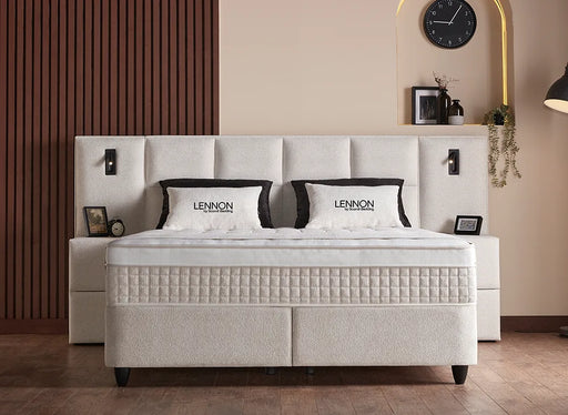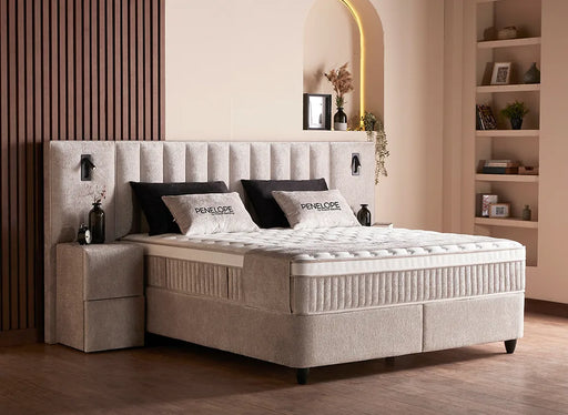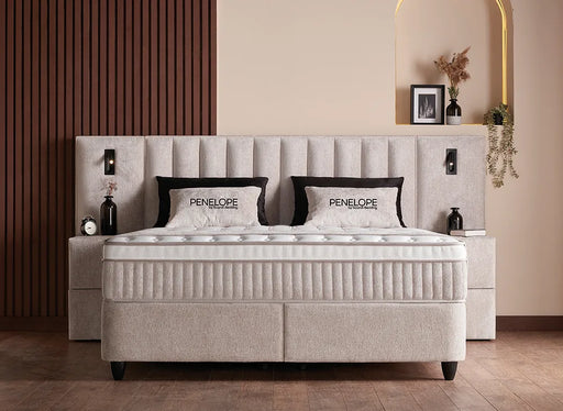 Boxspring Athena + 2 Chevets + Matelas Découvrez le summum de la fonctionnalité avec le Boxspring Athena. Pensé pour la vie moderne, ce lit intègre...
