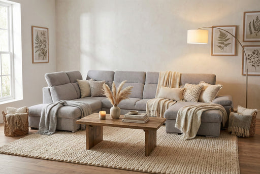 "Découvrez notre salon d'angle polyvalent, conçu pour les espaces de vie modernes. Cette solution astucieuse offre non seulement un confortable esp...