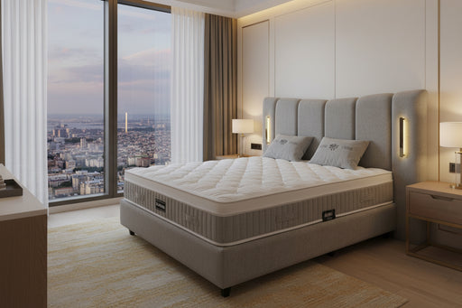 Transformez votre chambre en une véritable suite 5 étoiles avec le Boxspring XXL Olivia. Sa tête de lit panoramique extra-large habille tout le mu...