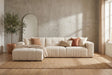 Apportez une touche de raffinement minimaliste à votre salon avec le canapé d’angle Napoli. Revêtu d’un tissu beige clair doux et structuré, ce canapé séduit par son design épuré, ses lignes généreuses et son assise capitonnée confortable. Grâce à sa méridienne spacieuse, il invite à la détente, que ce soit pour un moment lecture, un film ou une sieste.