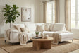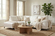 Le canapé d'angle Viola possède une assise robuste et compacte avec une extrémité ouverte d’un côté et un accoudoir de l’autre côté du salon.